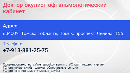 Доктор окулист, офтальмологический кабинет по адресу 634009, Томская область, Томск, проспект Ленина, 156 в дальнейшем Организация, размещена в следующих категориях:
