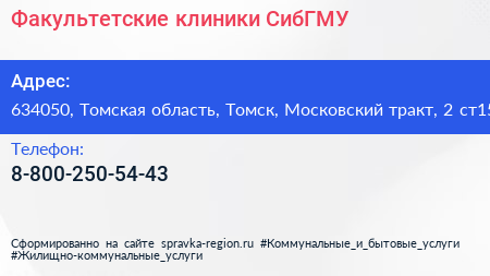 Факультетские клиники СибГМУ по адресу 634050, Томская область, Томск, Московский тракт, 2 ст15 в дальнейшем Организация, размещена в следующих категориях: