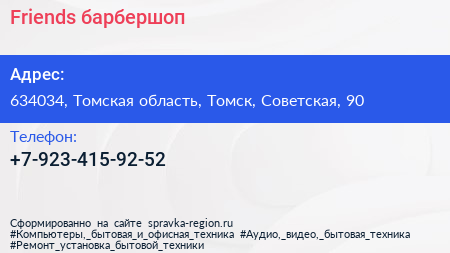 Friends, барбершоп по адресу 634034, Томская область, Томск, Советская, 90 в дальнейшем Организация, размещена в следующих категориях: