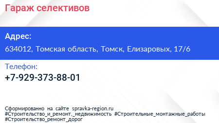 Гараж селективов по адресу 634012, Томская область, Томск, Елизаровых, 17/6 в дальнейшем Организация, размещена в следующих категориях: