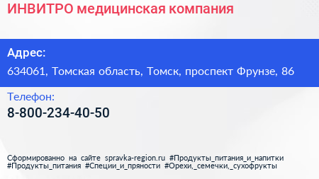 ИНВИТРО, медицинская компания по адресу 634061, Томская область, Томск, проспект Фрунзе, 86 в дальнейшем Организация, размещена в следующих категориях: