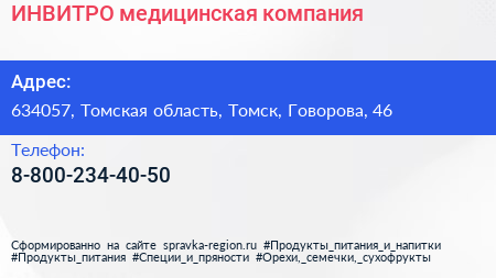 ИНВИТРО, медицинская компания по адресу 634057, Томская область, Томск, Говорова, 46 в дальнейшем Организация, размещена в следующих категориях: