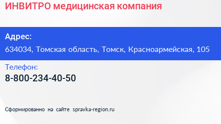 ИНВИТРО, медицинская компания по адресу 634034, Томская область, Томск, Красноармейская, 105 в дальнейшем Организация, размещена в следующих категориях: