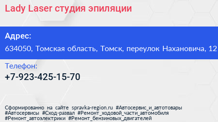 Lady Laser, студия эпиляции по адресу 634050, Томская область, Томск, переулок Нахановича, 12 в дальнейшем Организация, размещена в следующих категориях: