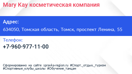 Mary Kay, косметическая компания по адресу 634050, Томская область, Томск, проспект Ленина, 55 в дальнейшем Организация, размещена в следующих категориях: