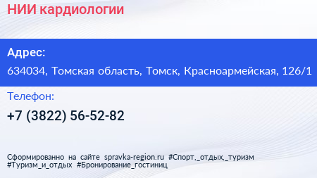 НИИ кардиологии по адресу 634034, Томская область, Томск, Красноармейская, 126/1 в дальнейшем Организация, размещена в следующих категориях: