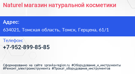 Naturel, магазин натуральной косметики по адресу 634021, Томская область, Томск, Герцена, 61/1 в дальнейшем Организация, размещена в следующих категориях: