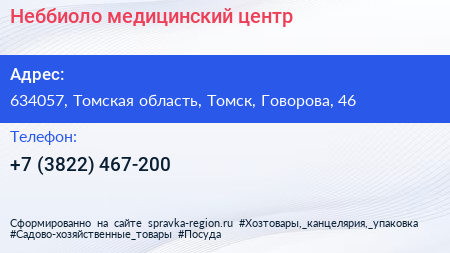 Неббиоло, медицинский центр по адресу 634057, Томская область, Томск, Говорова, 46 в дальнейшем Организация, размещена в следующих категориях: