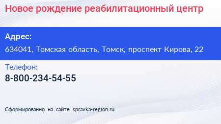 Новое рождение, реабилитационный центр по адресу 634041, Томская область, Томск, проспект Кирова, 22 в дальнейшем Организация, размещена в следующих категориях: