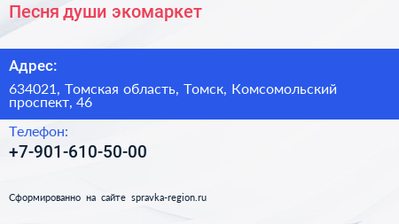 Песня души, экомаркет по адресу 634021, Томская область, Томск, Комсомольский проспект, 46 в дальнейшем Организация, размещена в следующих категориях: