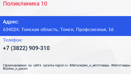 Поликлиника №10 по адресу 634024, Томская область, Томск, Профсоюзная, 16 в дальнейшем Организация, размещена в следующих категориях: