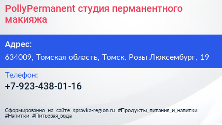 PollyPermanent, студия перманентного макияжа по адресу 634009, Томская область, Томск, Розы Люксембург, 19 в дальнейшем Организация, размещена в следующих категориях: