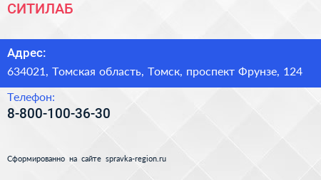 СИТИЛАБ по адресу 634021, Томская область, Томск, проспект Фрунзе, 124 в дальнейшем Организация, размещена в следующих категориях: