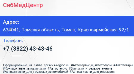СибМедЦентр по адресу 634041, Томская область, Томск, Красноармейская, 92/1 в дальнейшем Организация, размещена в следующих категориях:
