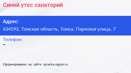 Синий утес, санаторий по адресу 634592, Томская область, Томск, Парковая улица, 7 в дальнейшем Организация, размещена в следующих категориях: