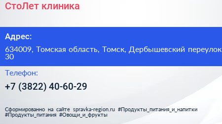 СтоЛет, клиника по адресу 634009, Томская область, Томск, Дербышевский переулок, 30 в дальнейшем Организация, размещена в следующих категориях: