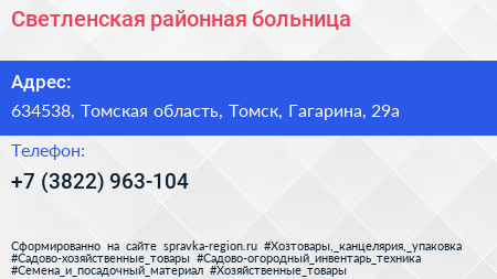 Светленская районная больница по адресу 634538, Томская область, Томск, Гагарина, 29а в дальнейшем Организация, размещена в следующих категориях: