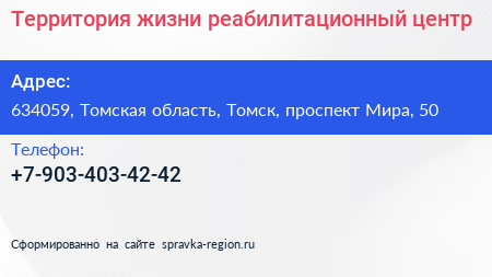 Территория жизни, реабилитационный центр по адресу 634059, Томская область, Томск, проспект Мира, 50 в дальнейшем Организация, размещена в следующих категориях: