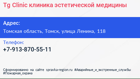 Tg Clinic, клиника эстетической медицины по адресу Томская область, Томск, улица Ленина, 118 в дальнейшем Организация, размещена в следующих категориях: