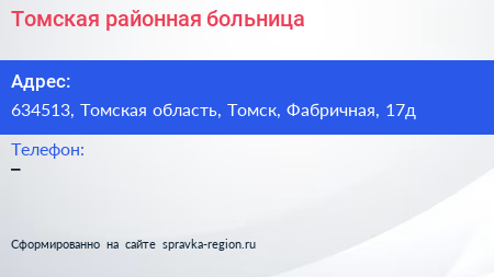 Томская районная больница по адресу 634513, Томская область, Томск, Фабричная, 17д в дальнейшем Организация, размещена в следующих категориях: