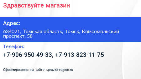 Здравствуйте!, магазин по адресу 634021, Томская область, Томск, Комсомольский проспект, 58 в дальнейшем Организация, размещена в следующих категориях: