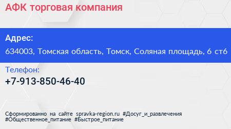 АФК, торговая компания по адресу 634003, Томская область, Томск, Соляная площадь, 6 ст6 в дальнейшем Организация, размещена в следующих категориях: