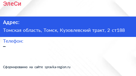 ЭлеСи по адресу Томская область, Томск, Кузовлевский тракт, 2 ст188 в дальнейшем Организация, размещена в следующих категориях: