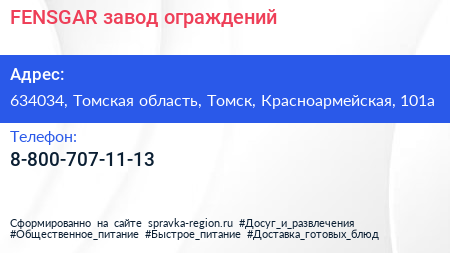 FENSGAR, завод ограждений по адресу 634034, Томская область, Томск, Красноармейская, 101а в дальнейшем Организация, размещена в следующих категориях: