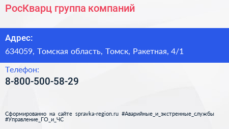 РосКварц, группа компаний по адресу 634059, Томская область, Томск, Ракетная, 4/1 в дальнейшем Организация, размещена в следующих категориях: