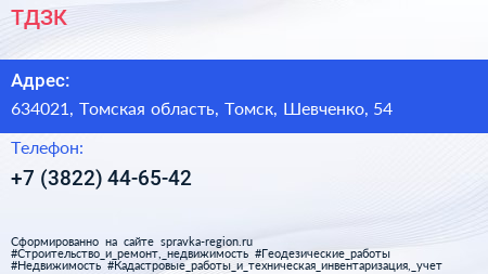 ТДЗК по адресу 634021, Томская область, Томск, Шевченко, 54 в дальнейшем Организация, размещена в следующих категориях: