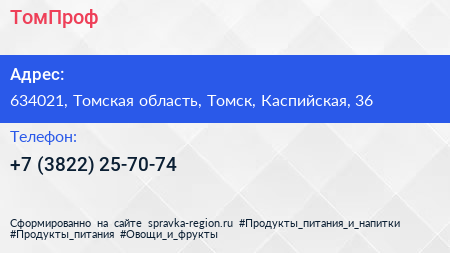 ТомПроф по адресу 634021, Томская область, Томск, Каспийская, 36 в дальнейшем Организация, размещена в следующих категориях: