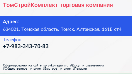 ТомСтройКомплект, торговая компания по адресу 634021, Томская область, Томск, Алтайская, 161Б ст4 в дальнейшем Организация, размещена в следующих категориях:
