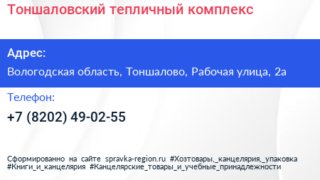 Адрес: Вологодская область, Тоншалово, Рабочая улица, 13а