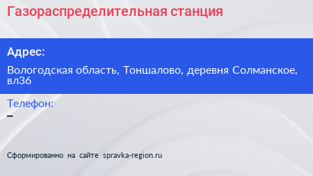 Газораспределительная станция по адресу Вологодская область, Тоншалово, деревня Солманское, вл36 в дальнейшем Организация, размещена в следующих категориях: