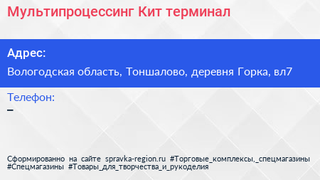 Мультипроцессинг Кит, терминал по адресу Вологодская область, Тоншалово, деревня Горка, вл7 в дальнейшем Организация, размещена в следующих категориях: