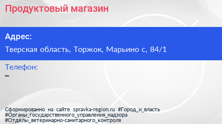 Продуктовый магазин по адресу Тверская область, Торжок, Марьино с, 84/1 в дальнейшем Организация, размещена в следующих категориях:
