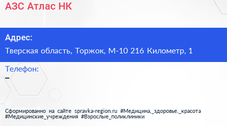 АЗС, Атлас НК по адресу Тверская область, Торжок, М-10 216 Километр, 1 в дальнейшем Организация, размещена в следующих категориях: