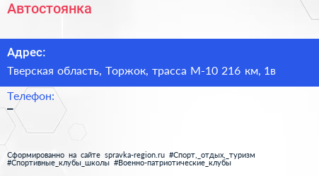 Адрес: Тверская область, Торжок, трасса М-10 216 км, 1в
