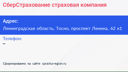 СберСтрахование, страховая компания по адресу Ленинградская область, Тосно, проспект Ленина, 62 к1 в дальнейшем Организация, размещена в следующих категориях: