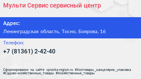 Мульти-Сервис, сервисный центр по адресу Ленинградская область, Тосно, Боярова, 16 в дальнейшем Организация, размещена в следующих категориях: