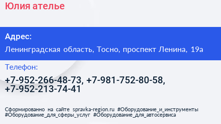 Юлия, ателье по адресу Ленинградская область, Тосно, проспект Ленина, 19а в дальнейшем Организация, размещена в следующих категориях: