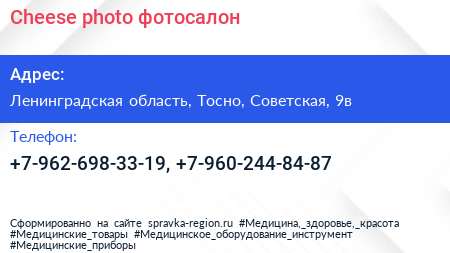 Cheese photo, фотосалон по адресу Ленинградская область, Тосно, Советская, 9в в дальнейшем Организация, размещена в следующих категориях: