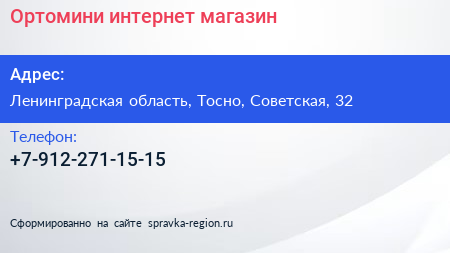 Ортомини, интернет-магазин по адресу Ленинградская область, Тосно, Советская, 32 в дальнейшем Организация, размещена в следующих категориях: