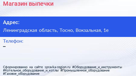 Магазин выпечки по адресу Ленинградская область, Тосно, Вокзальная, 1е в дальнейшем Организация, размещена в следующих категориях: