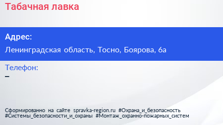 Табачная лавка по адресу Ленинградская область, Тосно, Боярова, 6а в дальнейшем Организация, размещена в следующих категориях: