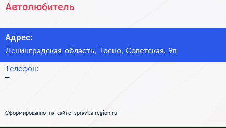 Автолюбитель по адресу Ленинградская область, Тосно, Советская, 9в в дальнейшем Организация, размещена в следующих категориях: