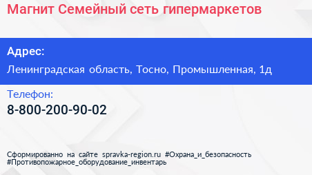 Магнит Семейный, сеть гипермаркетов по адресу Ленинградская область, Тосно, Промышленная, 1д в дальнейшем Организация, размещена в следующих категориях: