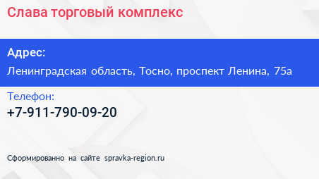 Слава, торговый комплекс по адресу Ленинградская область, Тосно, проспект Ленина, 75а в дальнейшем Организация, размещена в следующих категориях: