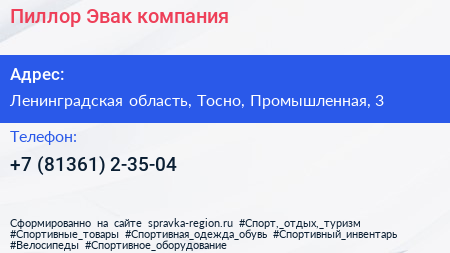 Пиллор-Эвак, компания по адресу Ленинградская область, Тосно, Промышленная, 3 в дальнейшем Организация, размещена в следующих категориях:
