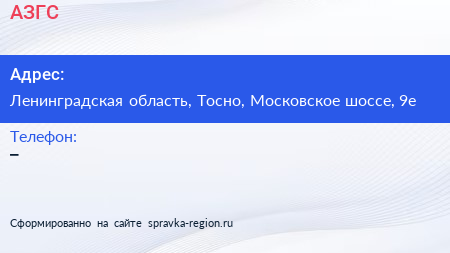 АЗГС по адресу Ленинградская область, Тосно, Московское шоссе, 9е в дальнейшем Организация, размещена в следующих категориях: